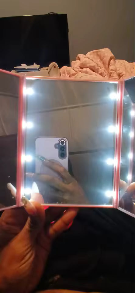 Ce miroir LED 3 volets a été conçu pour reproduire la lumière réelle, vous offrir une vision globale et vous permettre de faire un maquillage précis, uniforme et lumineux.